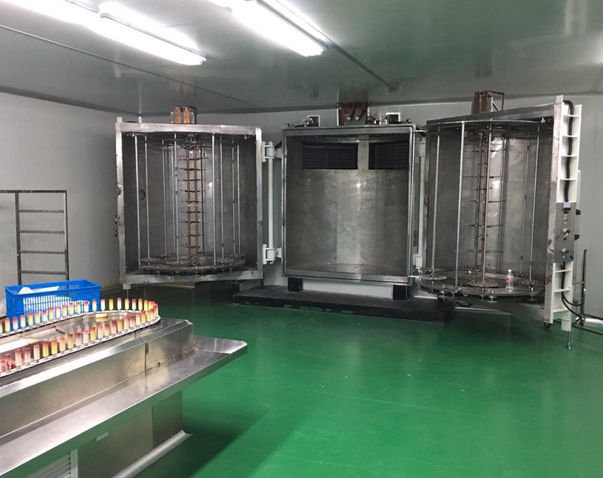 该设备配置了等离子体处理装置,高效磁控溅射阴极和电阻蒸发装置等,设备沉积速率快,镀层附着力好,镀层细腻致密,表面光洁度高,且均匀性一致性良好;该机实现镀膜工艺全自动化控制,装载量大,工作可靠,合格率高,生产成本低,绿色环保。该设备主要广泛应用于电脑壳、手机壳、家用电器等行业,可镀制金属膜、合金膜、复合膜层、透明(半透明)膜、不导电膜、电磁屏蔽膜等。